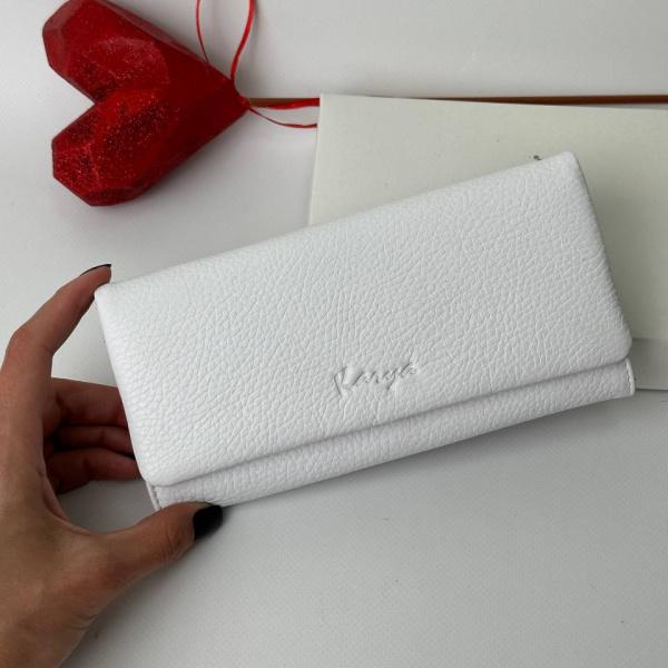 Белый женский кошелек выполнен из натуральной кожи. Данная модель имеет четыре основных отделения для купюр, также шесть отделения для карт, и очень удобные отделения на молнии их можно использовать для монет. Закрывается кошелек с помощью скрытых магнитов. Кошелек очень удобный и практичный, ничего лишнего.