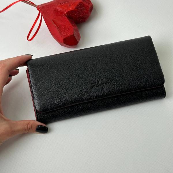 Вместительный женский кошелек выполнен из натуральной кожи черного цвета. Данная модель имеет четыре основных отделения для купюр, также шесть отделения для карт, и очень удобные отделения на молнии их можно использовать для монет. Закрывается кошелек с помощью скрытых магнитов. Кошелек очень удобный и практичный, ничего лишнего.