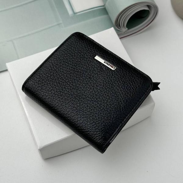 Кошелек, выполнен из натуральной зернистой кожи в черном цвете. Он приятный на ощупь и без проблем вмещает купюру 1000 гривен. Внутри имеет два отделения для купюр, 7 отделений для карт и сзади кошелка отделения на молнии. Закрывается кошелек на магнитную кнопку.
