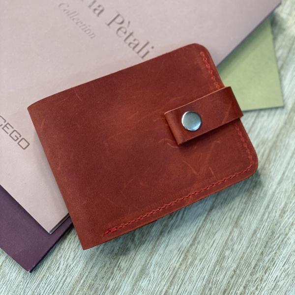 Очень удобный мини кошелек из натуральной кожи мы отшили для Вас. Кошелек закрывается на кнопку, есть два отделения для кредитных карт, также есть отдельный карман для монет который закрывается на кнопку, и полноценное отделения для купюр. Маленький но очень вместительный кошелек, подойдет под любой размер вашей сумочки.