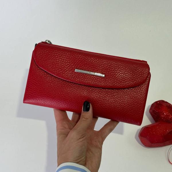 Красный кошелек выполнен из зернистой кожи. Внутри кошелька два основных отделения, есть отделения на молнии для монет, также внутри много отделений для карт. Если вам нужен кошелек стильный, удобный, с качественного материала, тогда вы его нашли.