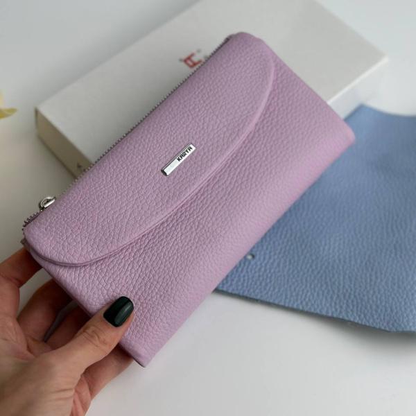 Кожаный женский кошелек красивого и нежного лилового цвета. Внутри кошелька два основных отделения, есть отделения на молнии для монет, также внутри много отделений для карт. Закрывается на скрытие магнитные кнопки. Если вам нужен кошелек стильный, удобный, с качественного материала, тогда вы его нашли.