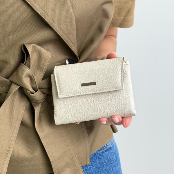 Маленький молочный кошелек из натуральной кожи под каждую сумочку. Кошелек закрывается на магниты, есть отделения для кредитных карт, также есть отдельный карман для монет который закрывается, и полноценное отделения для купюр. Маленький но очень вместительный кошелек, подойдет под любой размер вашей сумочки.