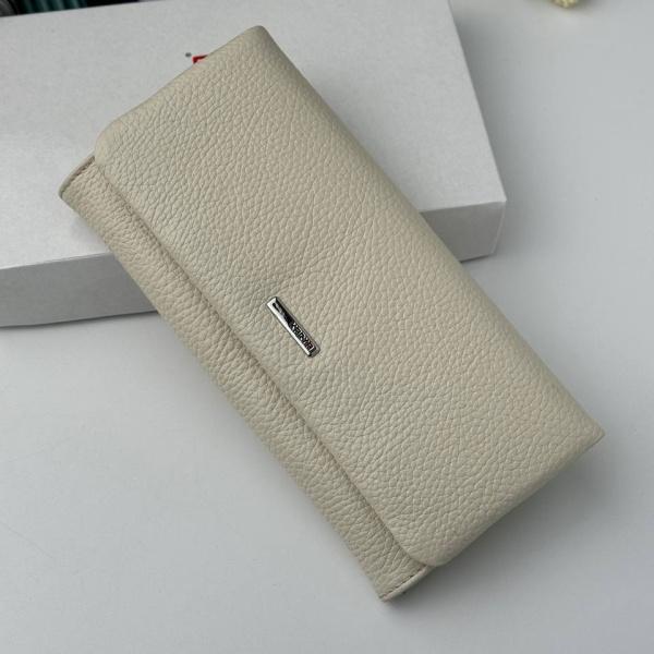 Наш новый женский кошелек в приятном молочном цвете сумеет сохранять идеальный порядок вашим деньгам и картам. Внутри кошелка просторные 4 отделения для купюр, 3 отделения для монет или же визиток, которые закрываются на молнии. А также 6 отделений для карт. Дополнительно сзади кошелька есть отделения на замке. Закрывается полностью модель на скрытые магнитные кнопки.