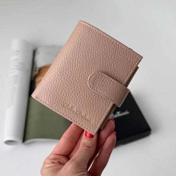 Пудровый женский кошелек выполнен очень конструктивно из приятной на ощупь зернистой кожи. Он имеет внутри отделения для купюр, отдельное отделения для карт. А что очень комфортно - внутри есть отдельное отделения для монет, которое закрывается на молнию. Полноценная удобность для ваших купюр и карт в одном лишь нашем новом аксессуаре.
