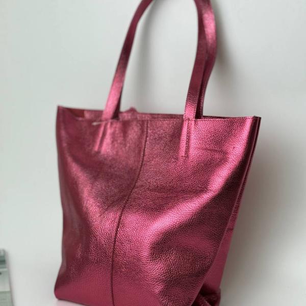 Очень стильный шопер из натуральной итальянской кожи красивого малинового цвета. Сумочка сделана из качественной гладкой и приятной на ощупь кожи. Застегивается сумка на молнию, внутри одно основное большое отделение. Длинна ручек разрешает носить сумочку как в руках так и на плече. Очень стильная и практичная сумочка, которая поместит в себе абсолютно все.