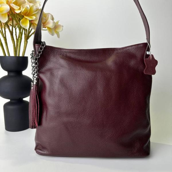 Сумочка из натуральной кожи в цвете марсала . Сумочка на каждый день очень вместительная и практичная, удобная ручка на плечо. Внутри два основных отделения, карман перегородка на молнии, также есть дополнительные карманы на молнии и без молнии. Мягкая и очень приятная на ощупь кожа флотар.