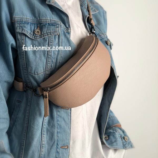 Стильная поясная сумочка из натуральной кожи, можно носить как через плечо так и на поясе. Внутри сумки одно основное отделения и карман, ремень регулируется.