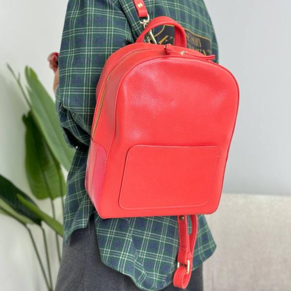 Коралловый рюкзак из натуральной кожи, очень практичный и удобный вариант на каждый день. Одно основание отделения, карман на молнии и без, также есть боковой дополнительный карман, рюкзак можно носить как на плече так и в руках за дополнительную ручку.