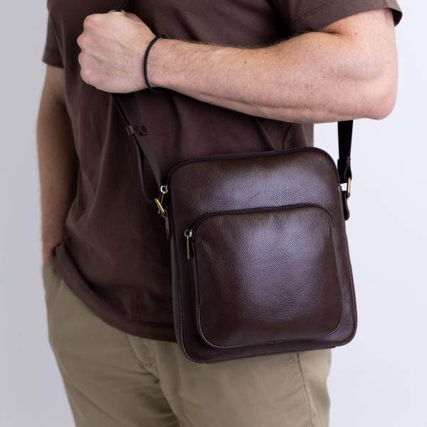 Мужская сумка из натуральной кожи в насыщенном шоколадном цвете — стильное и практичное решение на каждый день. Изготовлена из мягкой и приятной на ощупь кожи, модель имеет два вместительных основных отделения. Внутри предусмотрены два дополнительных кармана: один открытый и один на молнии — для удобного хранения мелочей. Снаружи, на обратной стороне, расположен внешний карман на молнии для быстрого доступа к нужным вещам. Удлинённый регулируемый ремень позволяет комфортно носить сумку на плече. Сдержанный дизайн и функциональность делают эту модель отличным выбором как для деловых встреч, так и для повседневного использования. Доступна в нашем магазине.