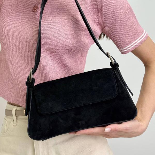 Женская сумка из натуральной замши в классическом черном цвете — элегантная новинка нашего производства, созданная для тех, кто ценит стиль и практичность. Модель оснащена просторным основным отделением с продуманной внутренней организацией: есть карман на молнии и открытые отделения для удобного хранения вещей. Регулируемый ремень позволяет носить сумку как на плече, так и в руке, подстраивая её под ваш ритм жизни и стиль. Универсальная, лаконичная и утончённая — она станет гармоничным дополнением как к повседневному, так и к более изысканному образу. Приобрести эту модель можно в нашем магазине по выгодной цене.