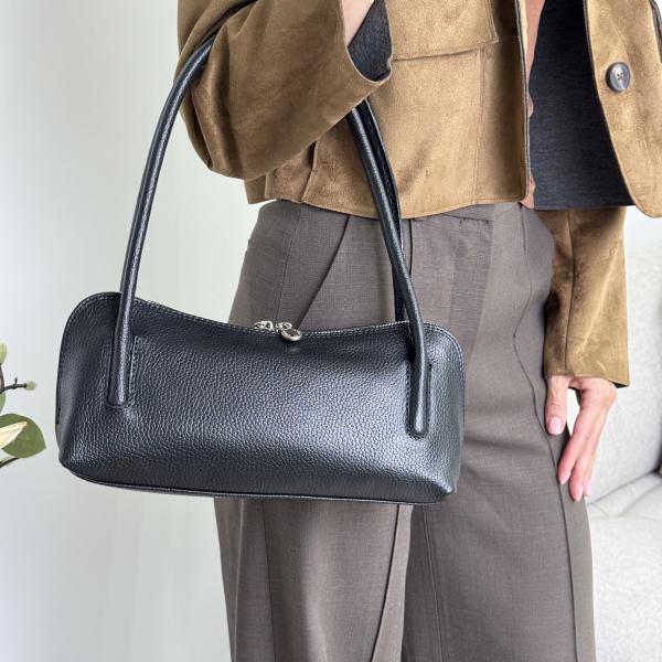 Женская сумочка небольшого размера в классическом черном цвете — универсальный аксессуар для повседневного использования. Модель имеет одно основное отделение и дополнительные карманы: открытый и на молнии, что позволяет удобно организовать ваши вещи. Длинные ручки обеспечивают комфортное ношение в руке или на плече. Серебристая фурнитура придает изделию элегантность. Приобрести эту стильную сумочку можно в нашем магазине — оптимальный выбор для тех, кто ценит комфорт и современный дизайн.