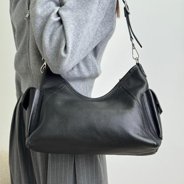 Женская сумочка в классическом черном цвете из натуральной зернистой кожи сочетает стильный внешний вид и удобство для повседневного использования. Модель имеет два основных отделения, разделенные карманом на молнии, а также дополнительный внутренний карман на замке для хранения необходимых вещей. Снаружи по бокам расположены карманы на магнитных кнопках. Сумочка закрывается на молнию, оснащена удлиненным ремнем для удобного ношения. Серебряная фурнитура придает модели элегантность и завершённый вид. Приобрести эту универсальную сумочку можно в нашем интернет-магазине — для тех, кто ценит стиль, комфорт и качество.