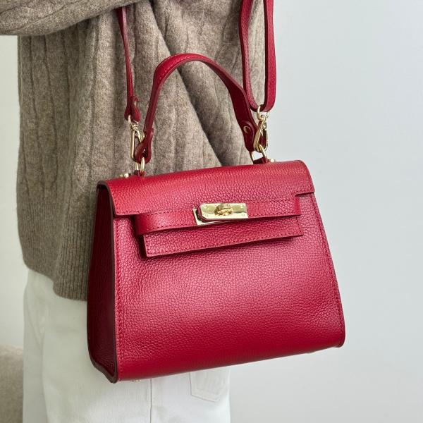 Компактная сумка из натуральной зернистой кожи насыщенного красного цвета — изысканный аксессуар, сочетающий классику и современный дизайн. Модель имеет одно основное отделение на молнии, внутри — удобный карман для телефона или мелочей. Предусмотрена одна аккуратная ручка для ношения в руке и длинный регулируемый ремень, позволяющий носить сумку на плече или через плечо. Декоративный ремень не только украшает сумку, но и позволяет регулировать объем наполнения. Золотистая фурнитура придает аксессуару элегантный блеск. Приобрести эту стильную модель можно в нашем магазине — идеальное сочетание практичности и современного стиля.