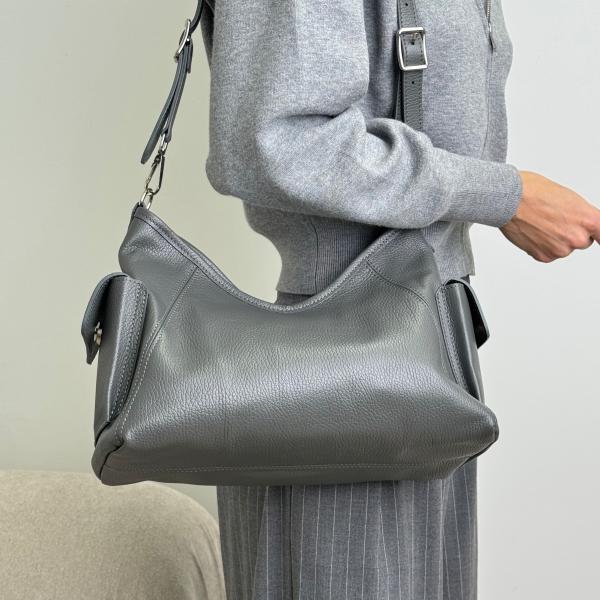 Женская сумочка в изысканном сером цвете — элегантная модель из натуральной зернистой кожи, сочетающая стиль и комфорт на каждый день. Внутри — два основных отделения, разделённых карманом на молнии, а также дополнительный внутренний карман на замке для удобного хранения мелочей. Снаружи, по бокам, расположены функциональные карманы на магнитных кнопках. Модель застёгивается на молнию и имеет удлинённый ремень для удобного ношения. Серебристая фурнитура придаёт сумочке утончённый блеск. Приобрести эту стильную сумочку можно в нашем интернет-магазине — идеальный выбор для женщин, ценящих качество, комфорт и современный дизайн.