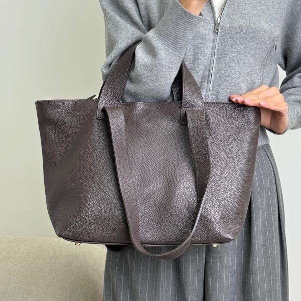 Женская сумочка в насыщенном шоколадном цвете, выполненная из натуральной зернистой кожи, сочетает элегантность и практичность в каждой детали. Модель имеет одно просторное основное отделение, а также три дополнительных кармана внутри — два открытых и один на молнии, что позволяет удобно организовать все необходимые вещи. Сумка закрывается на молнию и дополнительно фиксируется магнитной кнопкой для большей надежности в использовании. Ручки имеют два положения, благодаря чему сумку удобно носить как в руке, так и на плече. Эта стильная модель представлена в нашем интернет-магазине — отличный выбор для женщин, которые ценят комфорт, качество и современный дизайн.