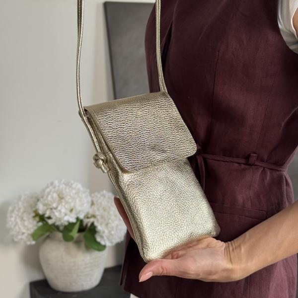 Компактная женская сумочка из натуральной зернистой кожи в изысканном золотистом цвете — стильное и практичное решение для повседневного использования. Модель оснащена одним основным отделением, которое надежно закрывается на молнию и дополнительно фиксируется клапаном с магнитной кнопкой. Под клапаном расположено открытое отделение для быстрого доступа к нужным вещам, а на обратной стороне — внешнее отделение на молнии. Сумочка дополнена удлинённым ремнём, который позволяет удобно носить её через плечо. Несмотря на компактный размер, модель отличается элегантностью и функциональностью. Доступна в нашем магазине.