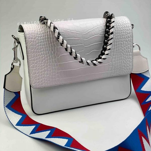 Шикарная и практичная модель из натуральной кожи, в комплекте стильный плечевой ремень с принтом. В комплекте также есть дополнительный плечевой ремень из натуральной кожи. Сумка имеет одно основное отделения, также есть дополнительный карман на молнии и без, под клапаном сумка закрывается на молнию и две кнопки магнит.
