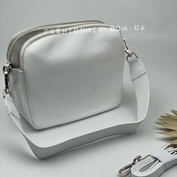 Модная сумочка из натуральной кожи, на первый взгляд может показаться вам маленькой, но не смотря на размеры эта красотка вмещает все необходимое для нас девушек на каждый день. Сумочка на три отделения, два закрываются на молнию, отделения которое разделает сумку закрывается на кнопку-магнит также, есть дополнительный карман, очень вместительная. В комплекте широкий ремень и стандартный ремень который регулируется.