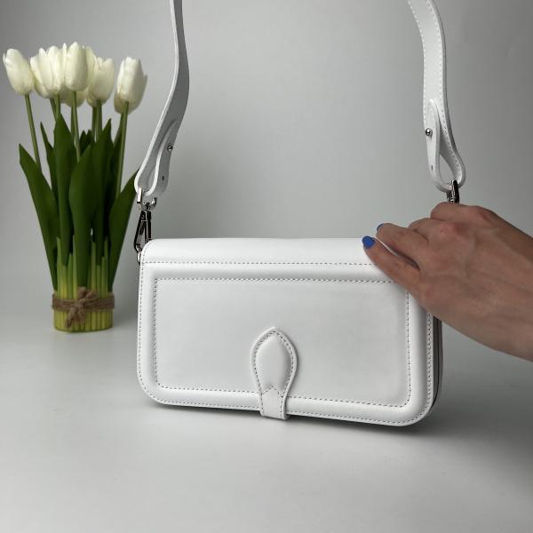 Новинка, сумка кроссбоди из натуральной гладкой кожи это тренд сезона. Под клапаном одно отделения которые закрываются на молнию, также есть дополнительный карман на молнии. Сумочку можно носить через плечо, очень практична и удобная моделька.