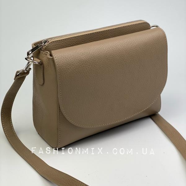 Стильная бежевая сумочка из натуральной кожи, на первый взгляд может показаться вам маленькой, но не смотря на размеры эта красотка вмещает все необходимое для нас девушек на каждый день. Сумочка на три отделения, также есть дополнительные карманы, очень вместительная. В комплекте плечевой ремень который регулируется.