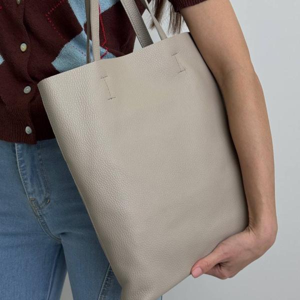 Мягкая бежевая сумочка из натуральной кожи, подойдет под любой ваш образ. Сумку можно носить в руке, а если нужны свободные руки - ее можно носить также и на плече. Внутри сумки два основных отделения и дополнительный карман который закрывается на молнию, также есть дополнительный карман на молнии и без.