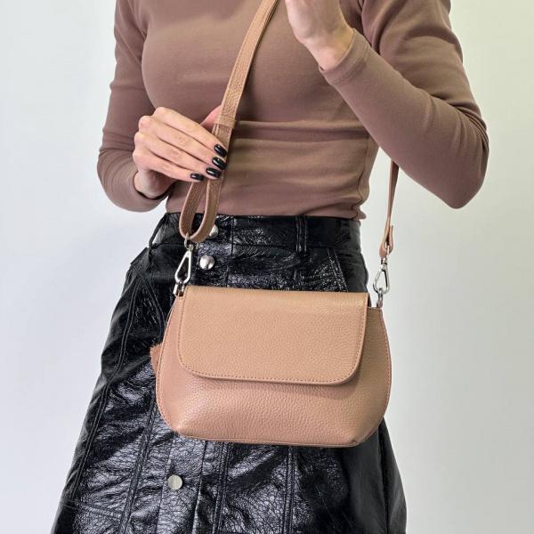 Маленькая женская сумочка из натуральной зернистой кожи. Несмотря на свои размеры сумочка очень вместительная, одно отделения и дополнительные карманы, в комплекте длинный плечевой ремень.