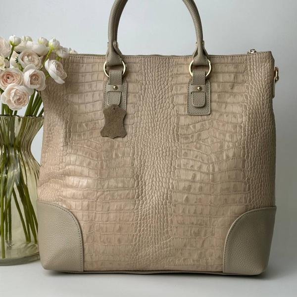Погрузитесь в мир элегантности и стиля с нашей женской кожаной сумкой, созданной для тех, кто ценит изысканность и функциональность. Ее основа выполнена из фактурной кожи, придавая каждому дню уникальный шарм и неповторимость. Ручки и дно сумки выполнены с зернистой кожей, придающей дополнительную прочность и изысканность. Благодаря своему большому размеру, она легко вмещает формат A4, делая ее идеальным спутником как для офиса, так и для деловых поездок. Стильная и универсальная, эта сумка станет вашим надежным спутником в мире бизнеса и моды.