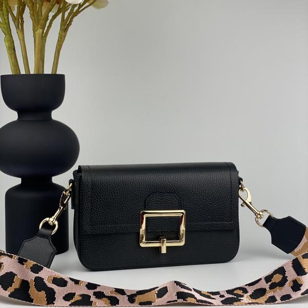 Кожаная женская сумочка через плечо, на длинном широком плечевом ремни который регулируется также в комплекте текстильный ремень. Внутри сумочка закрывается на молнии, одно основное отделения и дополнительный карман на молнии. Эта модная сумка придаст изюминку вашему образу.