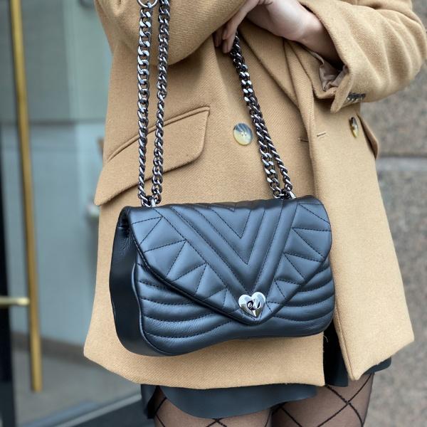 Очень милая женская сумочка с натуральной кожи, украсит ваш лук. Сумочка имеет одно основное отделения и карман на молнии, закрывается сумочка на поворотный замок. Очень удобная цепочка с кожаной вставкой на плечо.