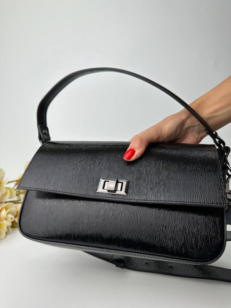 Кожаная женская черная сумочка украсит ваш повседневный образ. Шикарная моделька на каждый день так и для особого случая, очень вместительная и удобная. Внутри сумки одно отделения, также есть дополнительный карманы. Два плечевых ремня.