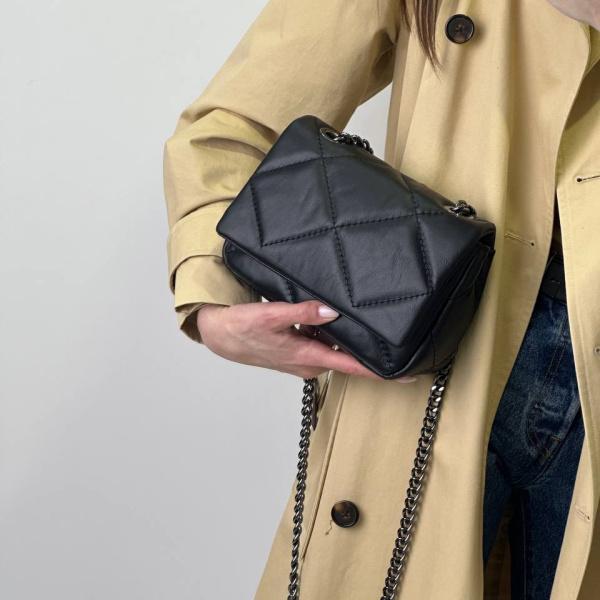 Стильная новинка сезона. Актуальный черный цвет и приятная мягкая кожа. Под клапаном сумки, одно основное отделение и дополнительный карман на молнии. Удобный и практичный вариант на каждый день.