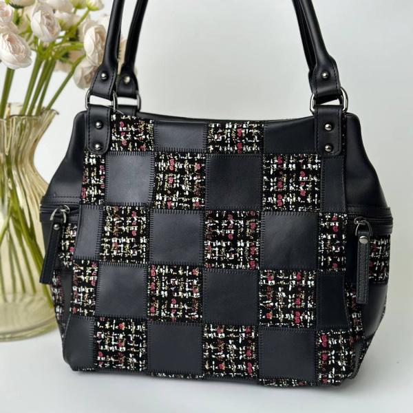 Купить сумку женскую из натуральной кожи большого размера. Сумка имеет три отделения которые закрываются на молнию, одно основное и два дополнительных боковых на молнии, также есть удобные маленькие боковые карманы на молнии, очень вместительная сумочка. Очень необычная модель, которая совмещает в себе замш и кожу. Яркие вставки очень подчеркивают дизайн и придают сумочке неотразимый вид.