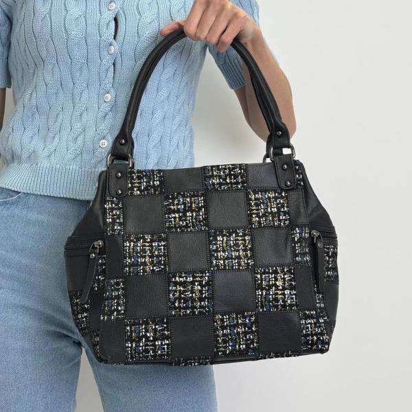 Купить сумку женскую из натуральной кожи большого размера. Сумка имеет три отделения которые закрываются на молнию, одно основное и два дополнительных боковых на молнии, также есть удобные маленькие боковые карманы на молнии, очень вместительная сумочка. Очень необычная модель, которая совмещает в себе замш и кожу. Яркие вставки очень подчеркивают дизайн и придают сумочке неотразимый вид.