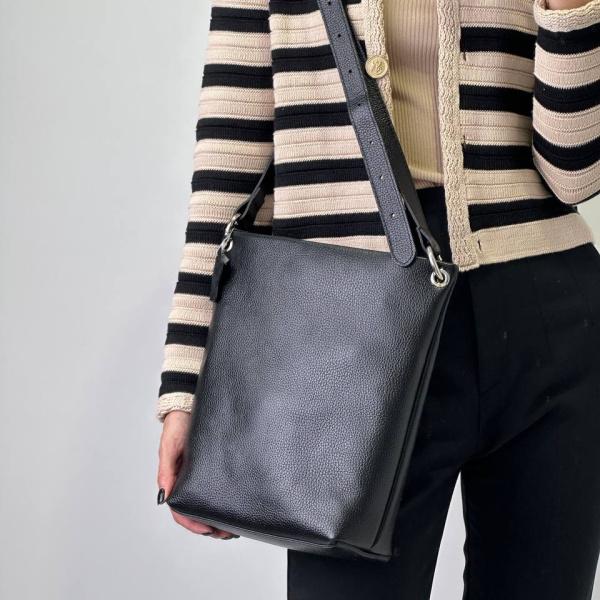 Новинка сезона, сумочка из натуральной зернистой кожи, закрывается полностью на молнию. Внутри сумочка очень вместительная, одно основное отделения также есть дополнительные карман как на молнии и без молнии. Ремень регулируется под нужную вам длину. Сумочка черного цвета из натуральной кожи это отличное решения для любительниц классических форм.