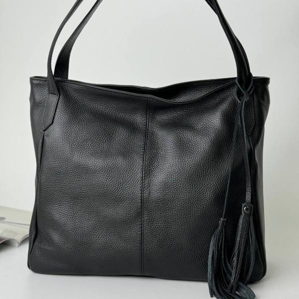 Купить черную женскую сумочку из натуральной итальянской кожи на каждый день. Сумка полностью закрывается на молнию. Внутри два основных отделение, которые разделяет карман на молнии. А также есть дополнительные карманы на молнии и без. Практичная модель, которую можно носить как на плече так и в руках.