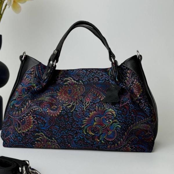 Женская сумочка среднего размера, которая покорит ваше сердце своею красотой и уникальностью. Внутри сумочка имеет два основных отделения, которые разделяет карман на молнии. А также есть дополнительные карманы на молнии. Закрывается она полностью на молнию. Модель имеет удобные ручки, а также дополнительно есть ремень, который регулируется. Практичность и вместимость - это о ней.