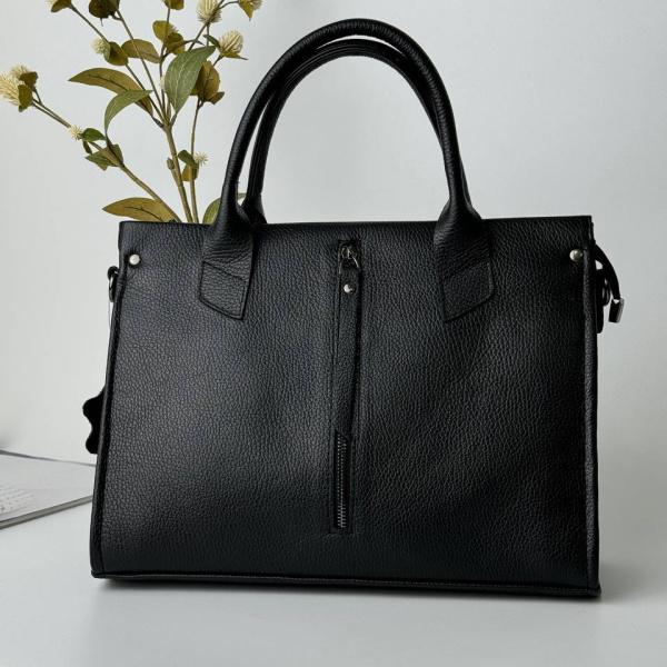 Модная женская сумочка в классическом черном цвете из зернистой кожи. Даная модель имеет не только привлекательный вид, но и безумно приятную кожу. Внутри сумки три отделение, а также есть карманы на молнии и без. Ручки закругленные, что удобно. Дополнительно есть ремень. Он регулируется под нужную вам длину.