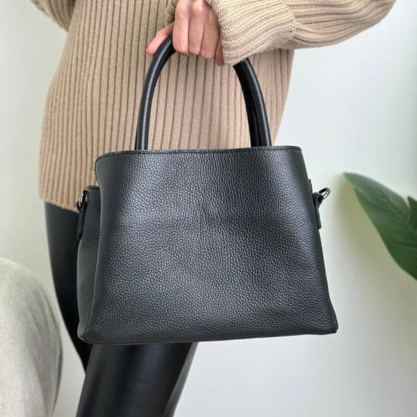 Купить женскую сумочку в классическом черном цвете - это отличное решение добавить стиля в ваш образ. Сумочка имеет три основных отделения, внутри есть карманы. Закрывается модель на молнию и магнитные кнопки. Длина ремня разрешает носить сумку, как в руках так и на плече. Она легкая и элегантная.
