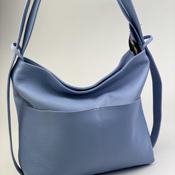 Новинка, сумка из мягкой натуральной кожи в голубом цвете, это тренд сезона. Под клапаном одно отделения которые закрываются на молнию, также есть дополнительный карман на молнии и без. Сумочку можно носить через плечо, очень практична и удобная модель.