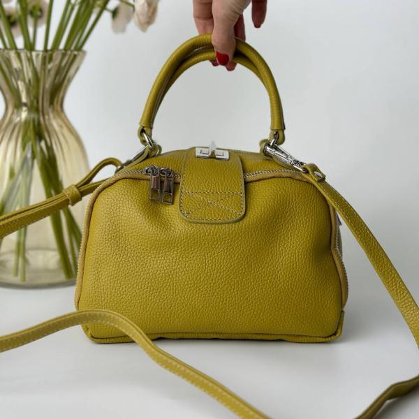 Маленькая женская сумка из натуральной кожи горчичного цвета. Сумочка имеет очень красивый и приятный цвет. Внутри есть два отделения, которое закрывается на молнию, карман для телефона. Очень удобные ручки и плечевой ремень, который легко регулируется.