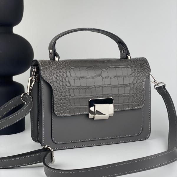 Женская сумочка кроссбоди из натуральной кожи, клапан на сумочке кожа с тиснением под крокодила, очень круто выглядит. Несмотря на свои размеры сумочка очень вместительная, под клапаном три отделения, одно закрывается на молнию, также дополнительный карман, в комплекте плечевой ремень.