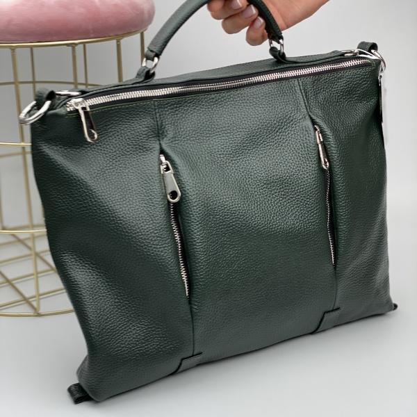 Новинка, сумка из натуральной кожи, очень красивая и в тоже время практичная, также очень приятная кожа. Эта сумочка уникальная тем что имеет две формы, ее можно носить как кросбоди через плече, также за счет карабинов можно изменить на полноценную сумку в которую входит формат А4. Внутри два отделения которые закрываются на молнию, также дополнительный карман на молнии и без, боковые карманы на молнии, сумочка очень вместительная.