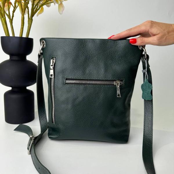 Новинка сезона, изумрудная сумочка из натуральной зернистой кожи, закрывается полностью на молнию. Внутри сумочка очень вместительная, одно основное отделения также есть дополнительные карман как на молнии и без молнии. Ремень регулируется под нужную вам длину. Сумочка изумрудного цвета из натуральной кожи это отличное решения для любительниц классических форм.