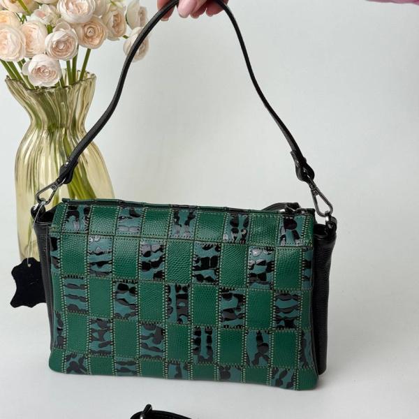 Красивая модель из натуральной кожи очень практичная и универсальная. Сумочка соединяет в себе очень приятные цвета, которые подойдут под любой стиль. Внутри три основных отделения и два дополнительных. Среднее отделение закрывается на замок. Внутри сумки есть еще дополнительные карманы на молнии и без. Для ношение есть два ремни. Один длинный, который урегулируется, а также короткий, можно носить в руках или на руке.