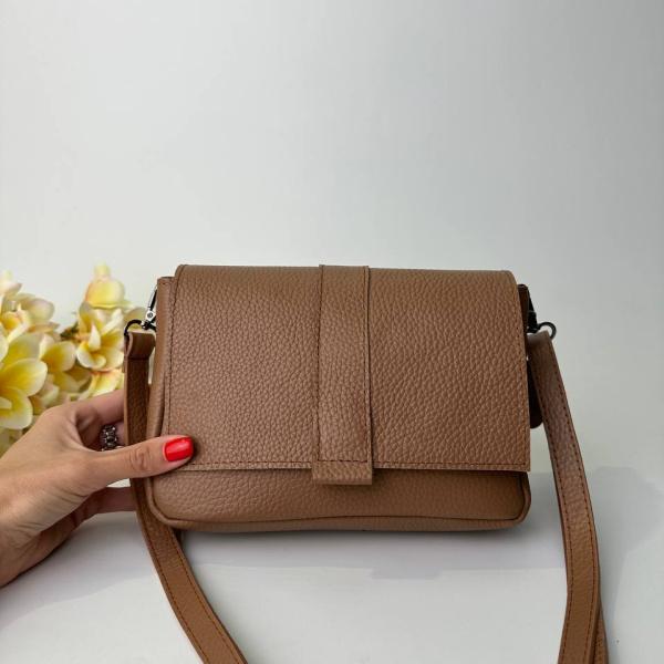 Удобная маленькая карамельная сумочка через плечо из натуральной кожи. В сумке одно основное отделение, также есть маленький карман на молнии. Такая сумочка подойдет для любой стильной девушки на каждый день.