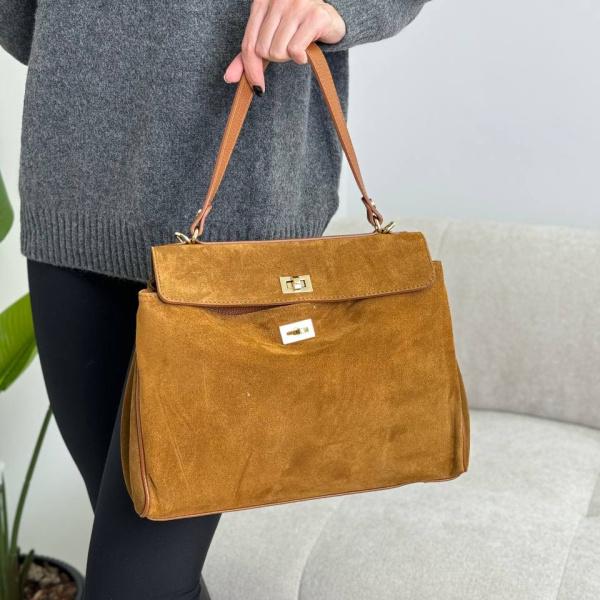 Твоя незаменимая спутница на каждый день. Сумочка выполнена из натуральной замши в соединение зернистой кожи. Сумочка имеет средний размер, два отдельных отделения и карман на молнии — идеальный баланс между практичностью и элегантностью. Носи её как захочешь: на плече с длинным ремнём или в руке с удобной короткой ручкой.