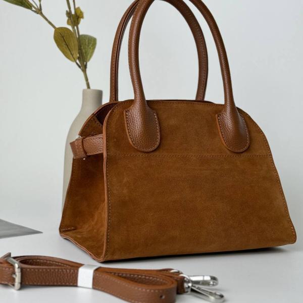 Трендовая сумочка с который вы будете ощущать комфорт с каждым вашим шагом. Сумочка полностью выполнена из натуральной итальянской кожи. Модель имеет один просторный отдел и дополнительные карманы для твоих мелочей. В комплекте стильный регулируемый ремень для максимального комфорта. Изящное сочетание натуральной замши и кожаных ручек делает её идеальной спутницей.