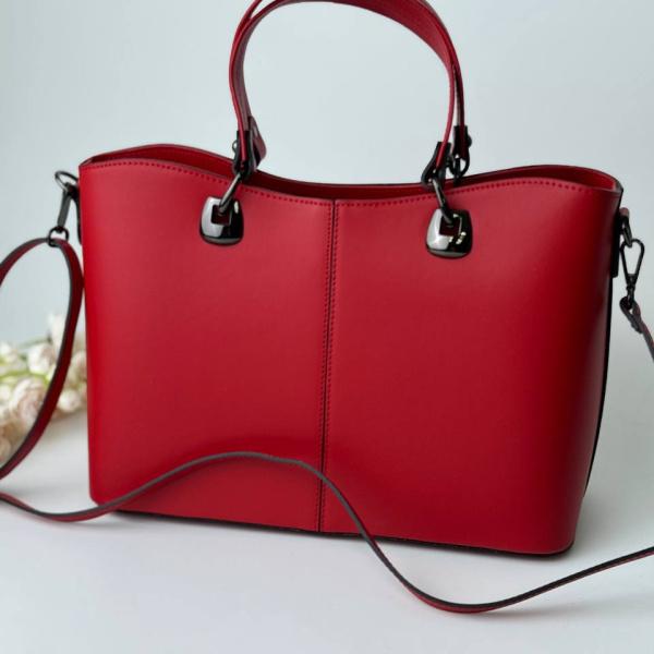 Если Вам нужна сумка которая имеет удобные ручки, тогда эта модель для Вас. Сделайте себе подарок в виде сумки из натуральной кожи красного цвета, благодаря которой Ваш мир наберет красок! Внутри два отделения, также одно отделения на молнии которое разделяет сумку, есть дополнительные карманы, в комплекте плечевой ремень. Сумка выполнена из качественной натуральной кожи.