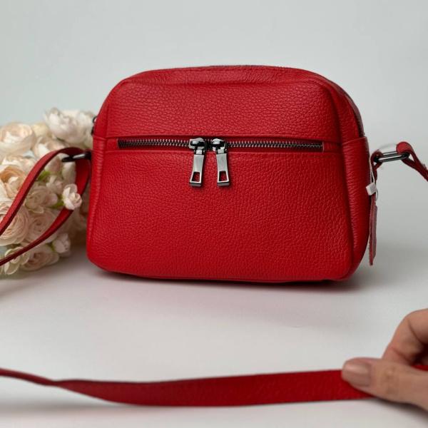 Женская красная сумочка из натуральной итальянской кожи. На первый взгляд может показаться вам маленькой, но не смотря на размеры эта красотка вмещает все необходимое для нас девушек на каждый день. Внутри сумки два отделения, также есть дополнительные карманы, плечевой ремень регулируется.